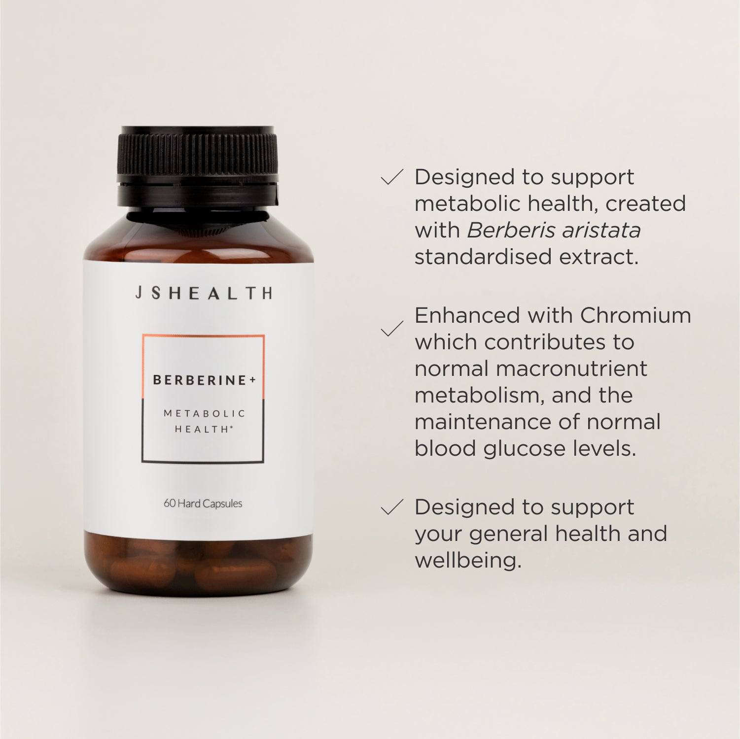 Berberine+ contains Berberis aristata, a standardised extract that contains Berberine. The Berberine+ formula also contains Chromium, which helps sugar metabolism.