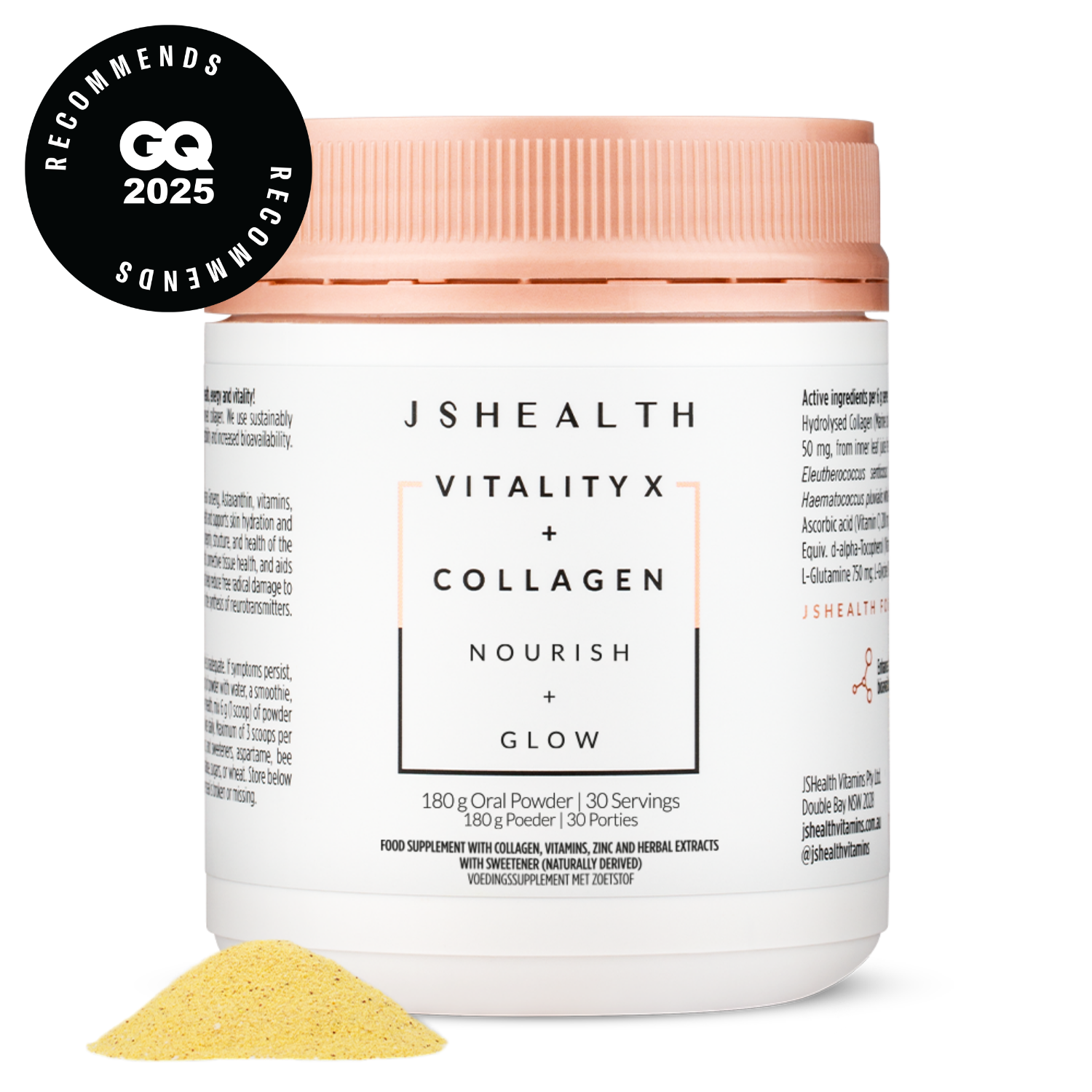 Vitality X + Collagen combines a collagen and beauty-supporting powder into one nutritionist-developed, research-backed comprehensive formula. Our proprietary Marine Collagen powder is enhanced with botanicals and nutrients designed to support overall beauty and vitality from the inside out. It contains only the purest hydrolysed Marine Collagen peptides plus 10 carefully chosen ingredients for youthful skin, healthy hair and nails.