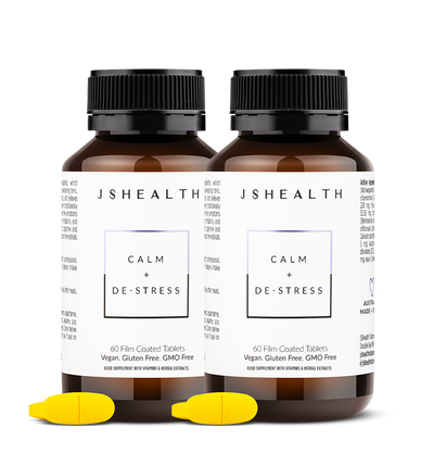 The JSHealth Calm + De-stress formula contains Ashwagandha, Saffron, Vitamin B5 and Vitamin C.