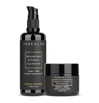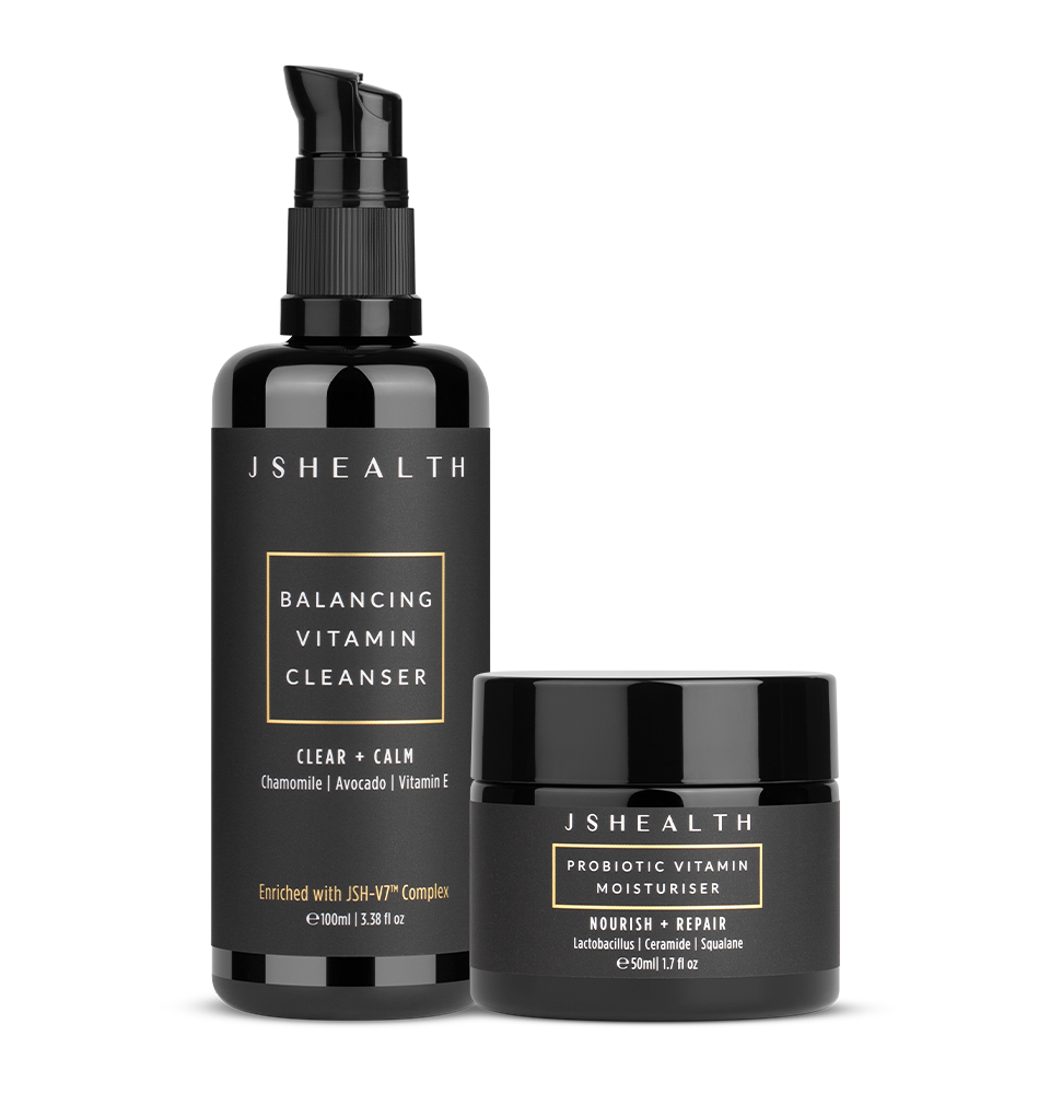 The Cleanse + Hydrate Bundle contains the Balancing Vitamin Cleanser and Probiotic Vitamin Moisturiser designed to balance, cleanse, hydrate, soothe, repair and nourish your skin.
