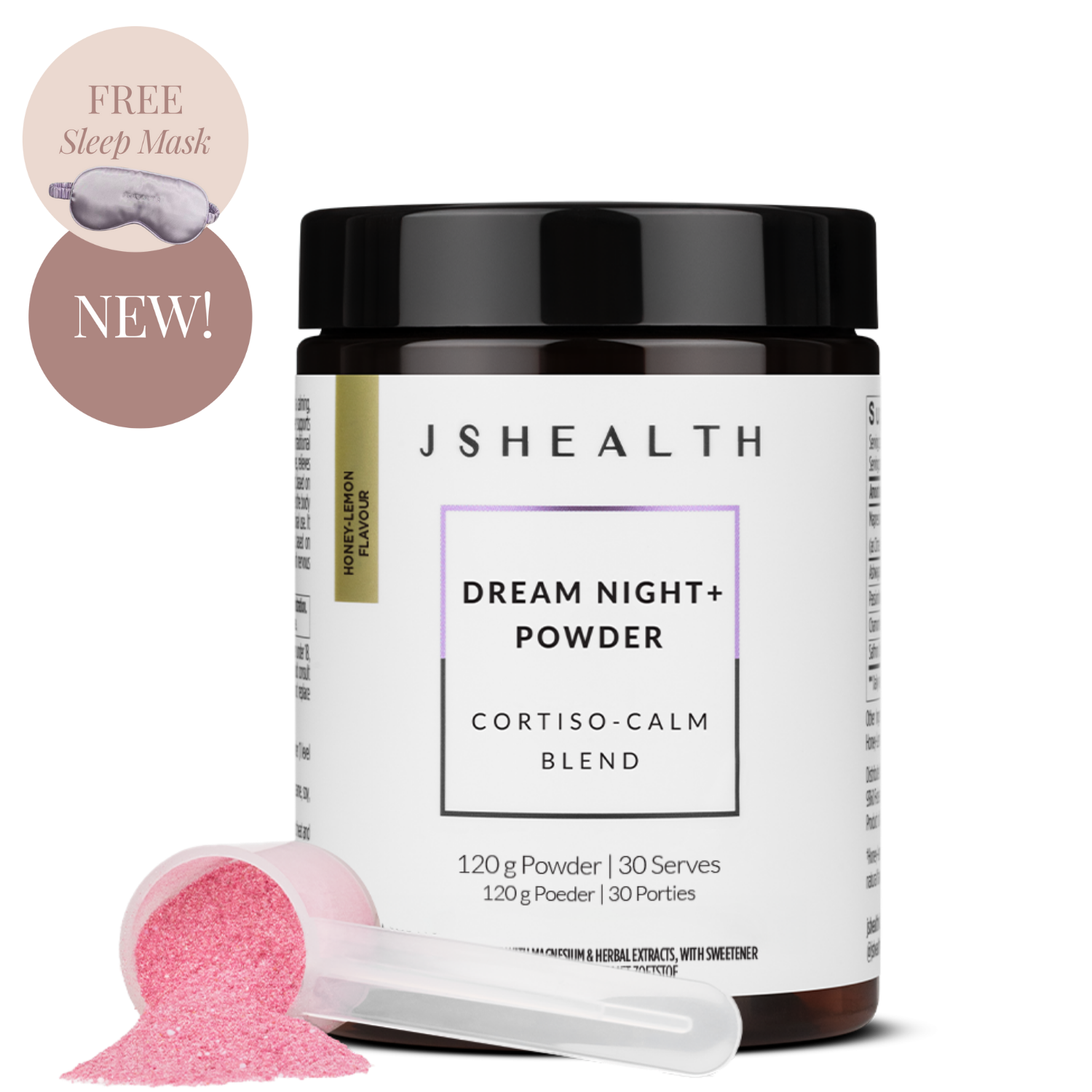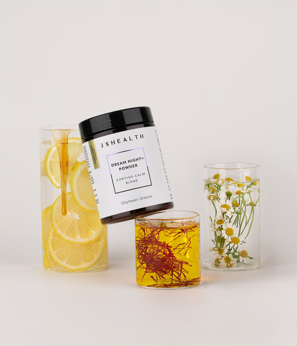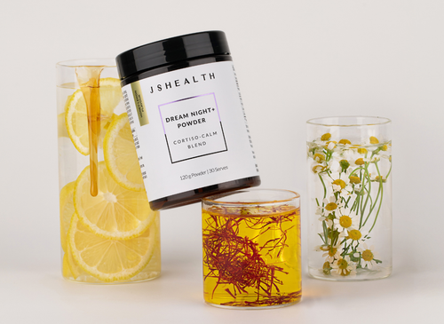 The JSHealth Dream Night+ formula contains Passionflower, Ashwagandha, Magnesium, Chamomile and Saffron in a Honey-Lemon flavoured powder.