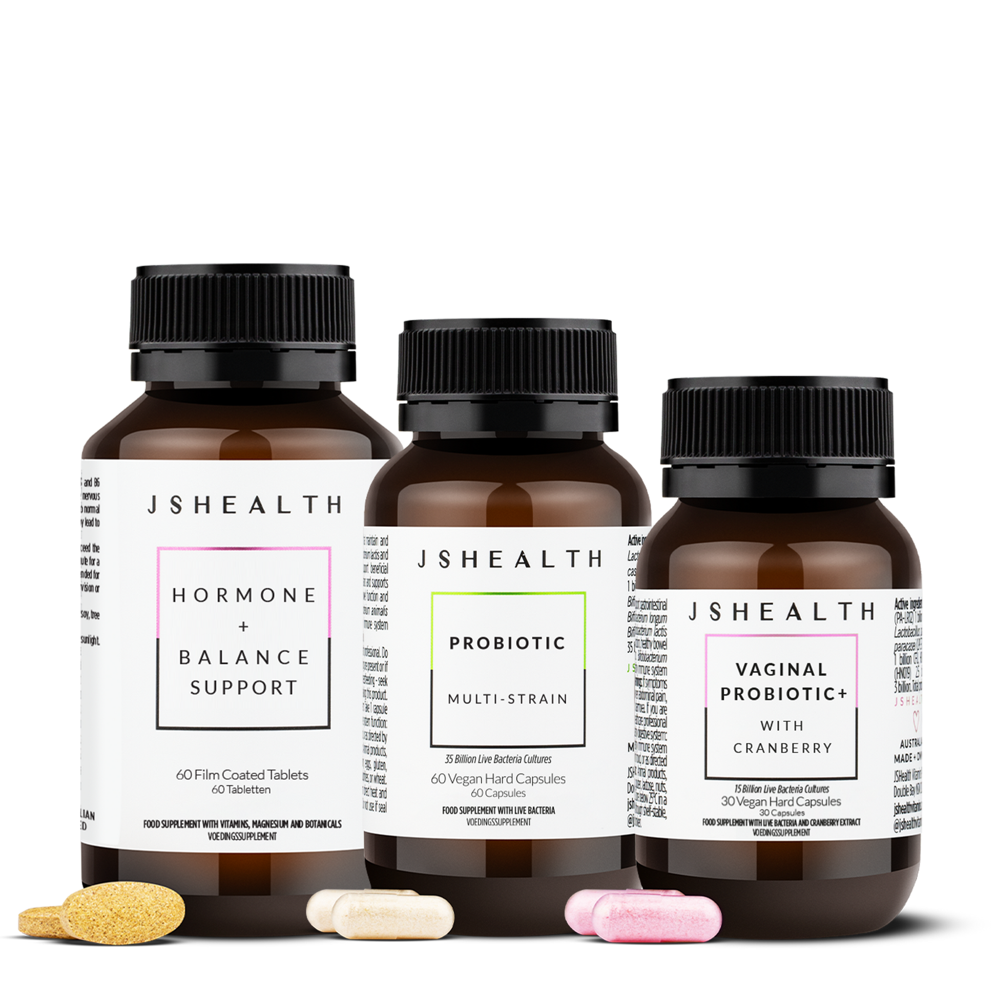 Designed to support your female needs, this kit features Hormone + PMS Support, Vaginal Probiotic+ and Hair + Libido.