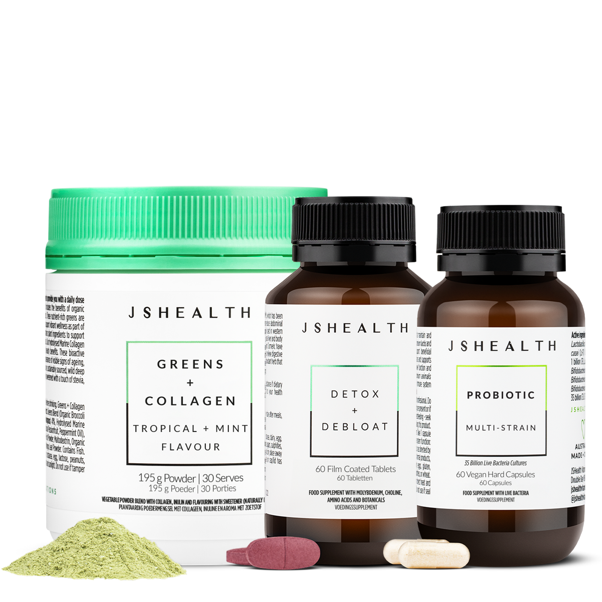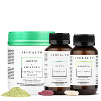 Jess' ultimate trio to refresh and replenish your gut health. The Gut Refresh Trusted Trio contains Greens + Collagen, along with our Detox + Debloat and Probiotic formulas.
