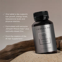 Hair + Energy For Men supports hair growth and thickness, and hair health, plus supports healthy testosterone levels, energy levels, physical endurance, stamina and blood circulation. Formulated with the same proprietary Iodine from our exclusive blend of JSHealth Miracle Kelp™ and optimally dosed Zinc, now enhanced with ingredients targeted for male wellness.