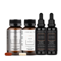 Hair + Energy For Men is built on the same best-selling base formula as our Hair + Energy supplement, now specifically enhanced for male wellness with additional ingredients. It contains our signature JSHealth Kelp™ blend (a complex of two kelp species containing Iodine) to support hair growth and health and specifically-dosed Zinc to support testosterone levels and hair thickness. Additionally, Hair + Energy For Men also contains Siberian Ginseng and Riboflavin to support stamina, physical endurance and energy levels, plus Ginkgo can contribute healthy blood circulation.