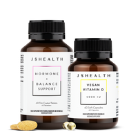 Jess' ultimate pair to support wellbeing and navigate hormones with ease. The 'Hormone Harmony' pair contains the Hormone + PMS and Vegan Vitamin D formulas.