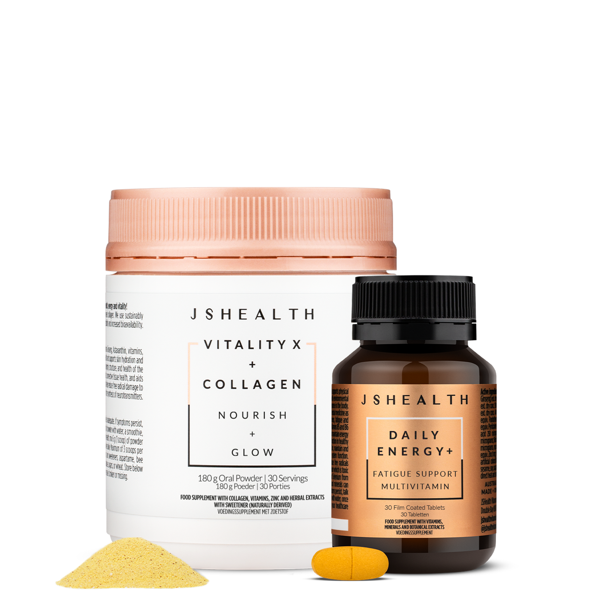 Jess' ultimate pair for an elevated morning routine. The Morning Ritual Perfect Pairing contains the Daily Energy+ and Vitality X + Collagen.