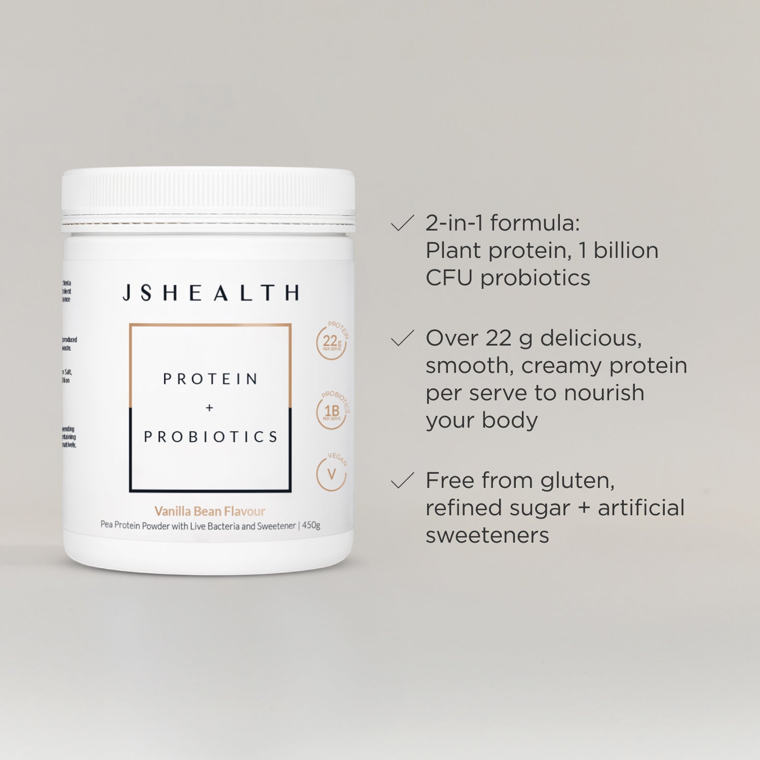 You can simply add 2 scoops (30 g) to at least 300 ml of water or your milk of choice and shake. Alternatively, add the Protein + Probiotics to a smoothie in the morning, after exercise, as a mid-morning/afternoon snack or even as an evening treat. Our advanced formula also blends beautifully into recipes. You can cook or bake with our Protein + Probiotics without having to worry about the protein being denatured, however, please note high heat can easily impact the probiotics in the powders.