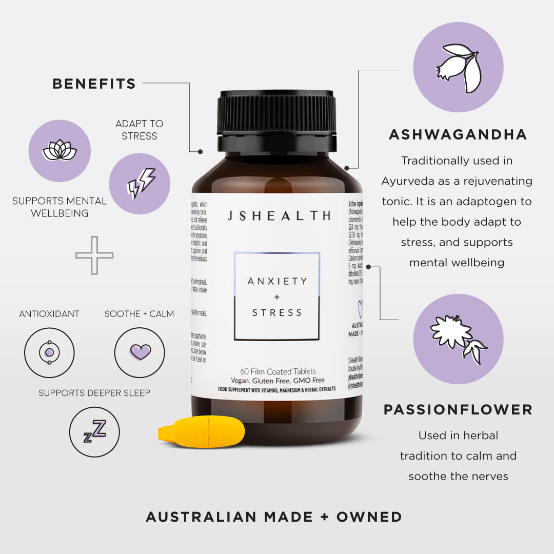 Anxiety + Stress: Adults, take 1 tablet with water twice per day after meals.